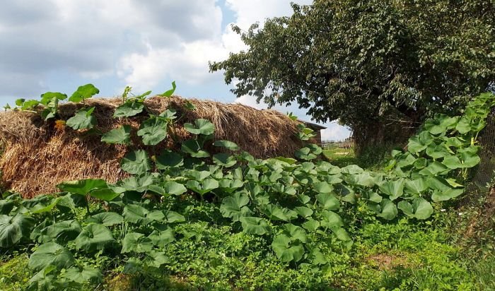 Já osobně vždy začínám větvemi ze sadu (jakožto drenážní a provzdušňovací vrstvou), které svým průměrem nestojí za to brát ke kotli na ztopení – šetřím si je za tímto účelem celý rok. Na ně přijde vrstva slámy – z hlediska kompostace je jedno, zda půjde o slámu čistou, či použitou pod koňmi. Tyto dvě vrstvy zavozím ostříhanou podzimní zahrádkou – tedy zbytky seschlých květin, ostříhaných keřů (nikoli jedovatých), chrástu ze zeleniny. Tyto hrubé suché materiály zajistí provzdušnění dna kompostu a zároveň plní funkci odsávání případné přebytečné vlhkosti. A potom již postupně zavážím kobyláky.