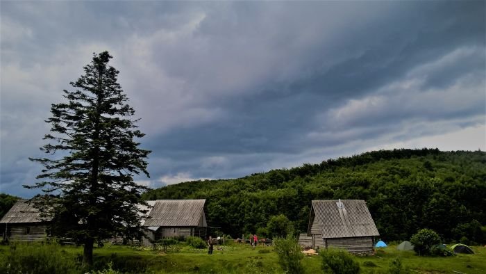 Člověk přestal dýchat nad tou nádherou, dojem mi trochu kazilo jenom množství lidí, kteří s námi přijeli. Na mýtině stály dřevěné stavby, které promlouvaly zašlým dřevem, jistě zažily už mnoho lidí, turistů, ale zároveň třicetistupňová vedra a možná i třicetistupňový mráz, možná se každý rok utápí v závějích sněhu a musejí odolávat silnému poryvu větru. Možná. Bohužel myšlenky musely jít stranou, jelikož na ploše u chat to hučelo jako v mraveništi a všichni řešili, kde postaví své dočasné obydlí. Vypnout, vypnout neumíme. Absence jakýchkoliv sítí, ať už elektrické, mobilní, či dokonce vodovodní, mi vyhovovala. Místo, kde nepotřebujete řešit, jestli se vám někdo dovolá, nebo jestli svoje fotografie můžete okamžitě sdílet s celým světem pomocí sociálních sítí, místo, kde se nemusíte bát napít se z potoka, když máte žízeň.