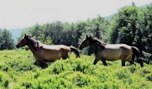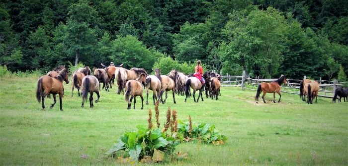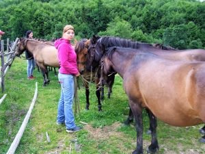 K údivu všech se začalo řešit, kdo ještě ten samý den vyrazí na svou první vyjížďku do hor na koni. My jsme usoudily, že akci po výstupu přenecháme jiným, protože nám bylo jasné, že se budou vracet již za tmy či šera a přece jenom nechat si ujít panoramata hor jsme nechtěly. Desetičlenná skupina byla nakonec utvořena a z lesa bylo slyšet dunění kopyt. To místní lidé přihnali stádo odněkud z pastvin, aby se tito polodivocí koně rázem podvolili přání lidí se svézt.