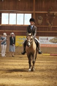 Velmi pěkně obsazená juniorská jezdecká třída je příslibem toho, že se v budoucnu ještě více rozrostou řady účastníků otevřených jezdeckých tříd. V silné konkurenci si vítězství z této třídy domů odvezla reprezentantka hřebčína Pretoria, zem. spol. MARWIN v.o.s. Dominika Marečková, která startovala v sedle WPCT valacha Pretoria Cedrik. Tento zástupce jedné z nejstarších a nejúspěšnějších rodin hřebčína Pretoria, který se sám jako tříletý hřebec stal v roce 2014 na MŠ v Hradci Králové nejlepším mladým hřebcem českého chovu, získal vysoké známky za exteriér a typ, což společně s vydařeným předvedením vyneslo dvojici na první místo. Velšské pony v typu kob můžeme rozhodně označit za plemeno vhodné svým temperamentem i velikostí pro juniorské jezdce. Dobrými známkami za typ a exteriér a pěkně zvládnutou individuální prezentací, ovšem s nedostatečným důrazem na dobré předvedení mechaniky pohybu poníka, se na druhé místo posunula další reprezentantka WPCT – klisna Limetree Happily s jezdkyní Terezou Borovkovou (Ranch Calamity Jane). V těchto třídách chce posuzovatel vždy vidět sice klidného a ovladatelného ponyho, ale zároveň živého, nikoliv spícího. Třetí příčku obsadila Kristýna Hájková s WPBr valachem českého chovu Chico (Stáj u Sepíka). Pony paní posuzovatelku zaujal pěkným exteriérem a kompaktností, ale zaznamenala u něj zatím nedostatky v proježděnosti, což se ve cvalových pasážích projevilo cvalem na špatnou nohu. Kvalita soutěžících pony v této třídě byla různorodá a je třeba si uvědomit, že 50 % známky zde tvoří hodnocení exteriéru a typu, proto i přes slušný jezdecký výkon nemohly některé dvojice dosáhnout na lepší umístění.