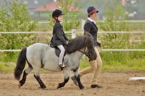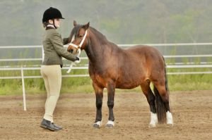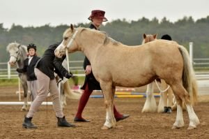 Ve velšské třídě naopak převažovaly importy. Z šesti startujících byl pouze jeden pony českého chovu. Vítězství si odnesl WMP valach Lledrith Dakota s Adélkou Selyben a vodičem paní Evou Pecharovou z JK Hubička Telnice. Jejich prezentace obsahovala vše, co by si posuzovatel přál v této třídě vidět: dobře připravený pony vysoké kvality, skvělá prezentace a sehranost celého týmu, krásný outfit v anglickém stylu a velmi dobrá jezdecká úroveň dítěte. S tímto výkonem by se neztratili ani na zahraničních výstavách. V mnoha ohledech se vítězům přiblížil tým z Farmy Zaječice: Anička Dušková, WMP klisna Withymead Honeysuckle a vodič paní Veronika Hynková, který obsadil druhé místo. Pro budoucí výstavy bychom doporučily zaměřit se na lepší vedení poníka jezdcem a udržení stálého jemného přilnutí, neboť v některých okamžicích byla otěž prověšená. Na třetí příčku se posunula klisna polského chovu Sahara s Martinou Kolaříkovou a vodičem paní Hanou Pfeiferovou ze Stáje Naes. Klisna v pěkném typu s temperamentem naprosto vyhovujícím potřebám Lead Rein třídy byla velkou oporou svému začínajícímu jezdci. U ostatních soutěžících jsme viděli drobné zmatky v individuální úloze, u některých se vodič pohyboval příliš daleko od ponyho, jiní se potýkali s neuvolněností poníka či jeho ochotou pohybovat se vpřed v požadovaném tempu.