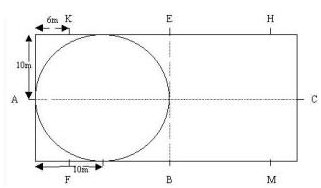 Dávejte si pozor na písmena v rohu (pozn. překl.: zde se jedná o F a K); body, kde se velký kruh dotýká stěny, nejsou v těchto písmenech nebo vedle nich, jsou v polovině vzdálenosti mezi E (nebo B) a rohem.