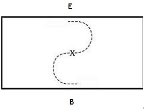 B – Půlkruh vpravo o průměru 10 m do X.Další cvik, který není tak složitý, jak se může některým lidem zdát! Při nácviku projeďte jednoduše polovinu malého kruhu o průměru 10 m ke středové linii, včas se otočte na středovou linii, jeďte rovně několik kroků a pokračujte ze středové linie opačným způsobem, než jste vjížděli na ni. Propracujte se postupně k tomu, že tyto dva půlkruhy bude spojovat pouze jeden rovný krok, během kterého změníte směr a ohnutí koně a máte cvik za sebou!