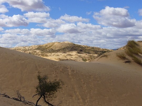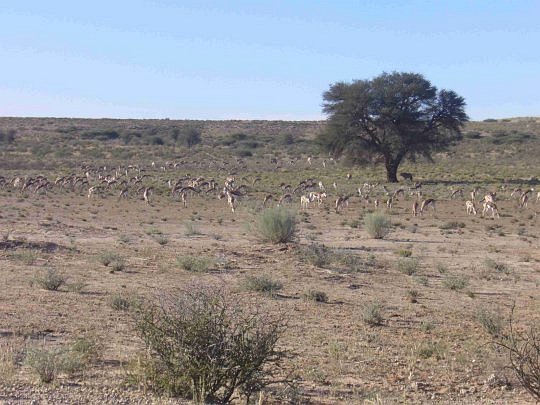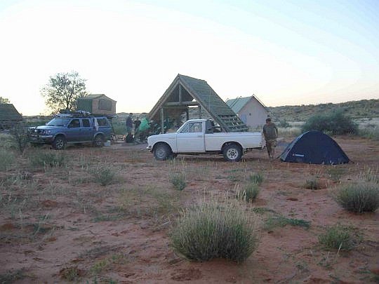 S Datsunem nás snad už nic nepřekvapí a tak se odvážně pouštíme do posledního plánu, který jsme se rozhodli uskutečnit. Gemsbok Kalahari NP se rozkládá na území JAR a Botswany. Cesta dlouhá více jak 450 km se zdá být v tom vedru nekonečná, ale nakonec se dostáváme do cíle. Datsun sice znovu vyzkouší naše nervy, ale nakonec se prokáže jako celkem spolehlivé vozidlo, které nadchne i recepčního v kempu v Botswaně. Na Jihoafrické straně je totiž kemp plný, a tak zkoušíme štěstí za hranicemi. Tady v kempu je sice taky plno, ale nakonec se mi podaří sympatického černocha usmlouvat, zatímco Sebastian se tváří poněkud rezignovaně. Než půjdeme postavit stan, vydáme se na malý průzkum po parku. Zvířata zde žijí naprosto volně a vzhledem k rozlehlosti parku je nezbytné strávit zde alespoň týden, aby bylo možné spatřit co nejvíce.