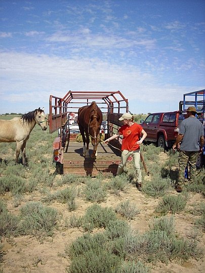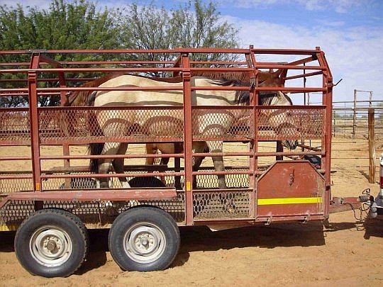 McLoud byl ten den v obzvláště rozverné náladě. Oba koně nastoupili do přepravníku bez sebemenšího zaváhání. Jen mi přepravník pro dobytek nepřipadal jako příliš dobré řešení pro přepravu koní. Šlo vlastně o jakousi železnou klec bez nástupní rampy, ve které koně stáli na volno, způsobně vedle sebe a spokojeně požvykovali seno. Při vyřčení mé obavy, že se kůň o takovouto železnou konstrukci může snadno zranit, mi bylo vysvětleno, že do takového přepravníku se vejde až 6 koní. Nesmysl! Pomyslela jsem si, abych se za pár dní přesvědčila, že je něco takového skutečně možné. Cesta autem nám zabrala necelou hodinu. Koně mistrně balancovali a přešlapovali, zatímco přepravník poskakoval po nerovné silnici.