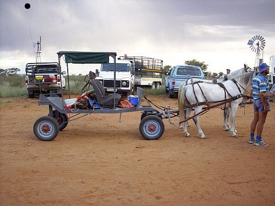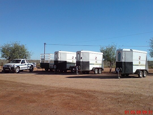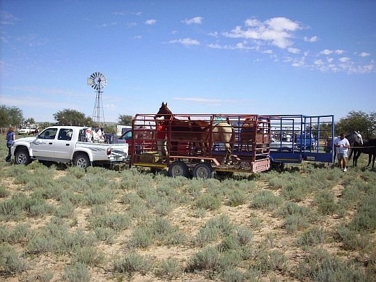 Konečně jsme byli na místě. Před farmou parkovaly desítky aut s přepravníky a až tady nás napadlo, že náš přepravník není nijak výjimečný, že africké přepravníky pro koně prostě vypadají jako ty pro dobytek. Bylo tu neskutečně živo. Další a další přijíždějící, vykládání koní, sedlání a klábosení se známými, kteří se viděli naposledy možná právě před rokem.