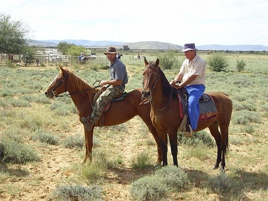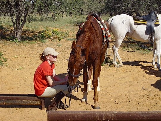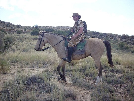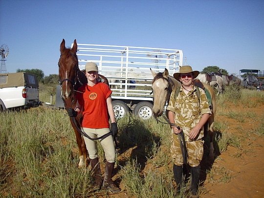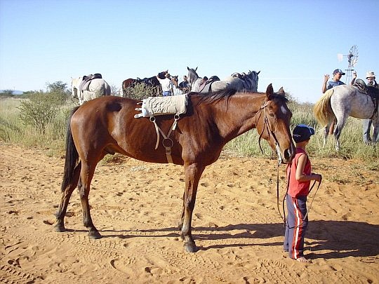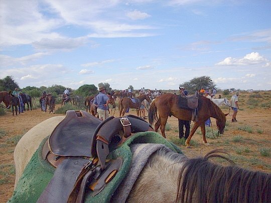 Pro nás zase bylo neskutečně zajímavé rozhlédnout se kolem sebe. Někteří jezdci vypadali zrovna tak, jako by si právě odskočili od dojení krav – dlouhé nebo krátké plátěné kalhoty, někteří z nich neměli boty, což nám vzhledem k všudypřítomným trnovým keřům připadalo velmi odvážné. V rajtkách a čapsech jsem si připadala poněkud exoticky. Ve složení sedel převládala jednoznačně sedla australská. Občas jsme zahlédli sedlo westernové, jeden anglický univerzál a také jsme se nestačili podivovat nad jihoafrickou zručností a vynalézavostí, které dali vzniknout sedlům porůznu improvizovaným. Fantazii se meze nekladou. Někteří odvážlivci se vydali bez sedla. Téměř všichni koně měli v hubě páku a to i koně, kteří patřili dětem nebo mladým jezdcům. Styl ježdění některých připomínal spíše jízdu na motorce, síla a rychlost mnohde převládala nad jemností a citlivou rukou jezdce.