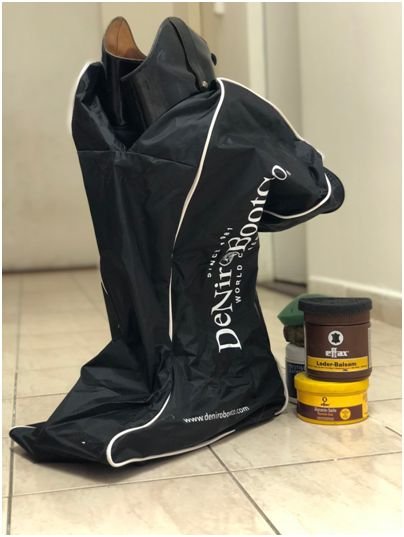 Pravidelné mazání kožených bot speciálními prostředky kůži změkčuje, takže je pružnější a nepraská, a zároveň ji impregnuje, takže je kůže výrazně odolnější vůči vlhkosti a také vůči koňskému potu, který je velmi agresivní.