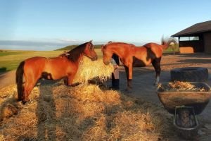 Dále požadujte, aby byl balík slámy nastýlán v době, kdy je dušný kůň v pastvině a nestojí nedočkavě poblíž. Je skvělé, pokud se nastlání ležiště nenechá na koních (aby si rozebrali balík sami), ale učiní tak ošetřovatelé – tím se zamezí norování dušných koní v balíku slámy.