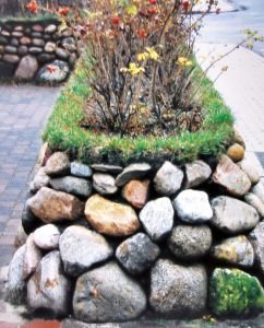 Také zdi z křemenných valounů jsou občas k vidění, především v severním Německu. Jejich specialitou je osázení v koruně keři a travním drnem. U těchto staveb je nutné hlídat prorůstání rostlin, obzvláště keřů, do hloubky zdi – kořenový systém sice zpevňuje celou pyramidu, ale po letech ji může nakonec doslova prorůst a roztrhat.