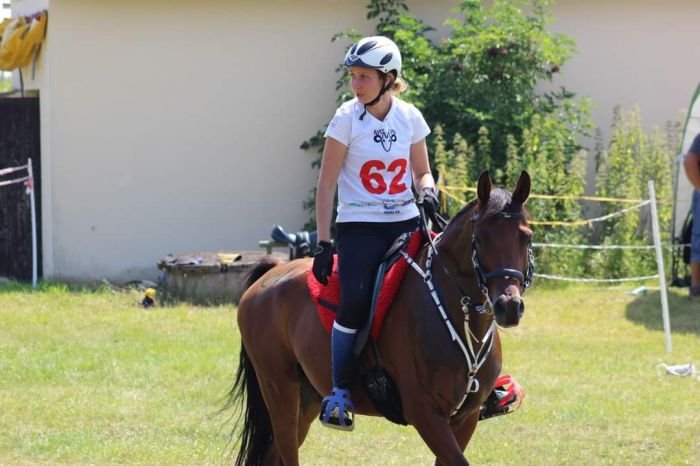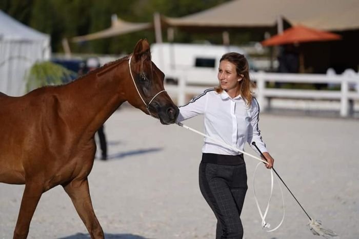 Můj první arabský kůň Poesia. Měla jsem spoustu koní pod zadkem, ale hodně jich bylo od soukromých majitelů. Jednoho dne jsme však řekli: „A konec!“ Koně si budeme dělat jen pro sebe. A prvním arabským koněm byla Poesia. Sedmiletá, naprosto nevyrovnaná klisna, která nechtěla odjet od stájí, lidem vůbec nevěřila a trénink s ní byl doslova a do písmene za trest. Klisna po dostihové kariéře. Velmi jsem se na ní nadřela, kolik slz jsem uronila ze vzteku. Ale jak se říká: „Každý vytrvalostní kůň musí mít nějaký bzuk, aby mu to dobře běhalo…“ A ona jich doopravdy měla hodně. Ale nakonec mě naučila vlastně nejvíc ze všech koní a na tratích mi absolutně vždy věřila. Došla se mnou až na konec do CEI*160 km a v úžasném finiši, kdy předvedla svoji dostihovou kariéru, to vytáhla na 2. místo. Provedla mě ME a MS. Pro naši rodinu to byla srdcová klisna. Bohužel letos odešla do koňského nebe. Ale zůstaly nám tu po ní úžasné sportovní naděje…