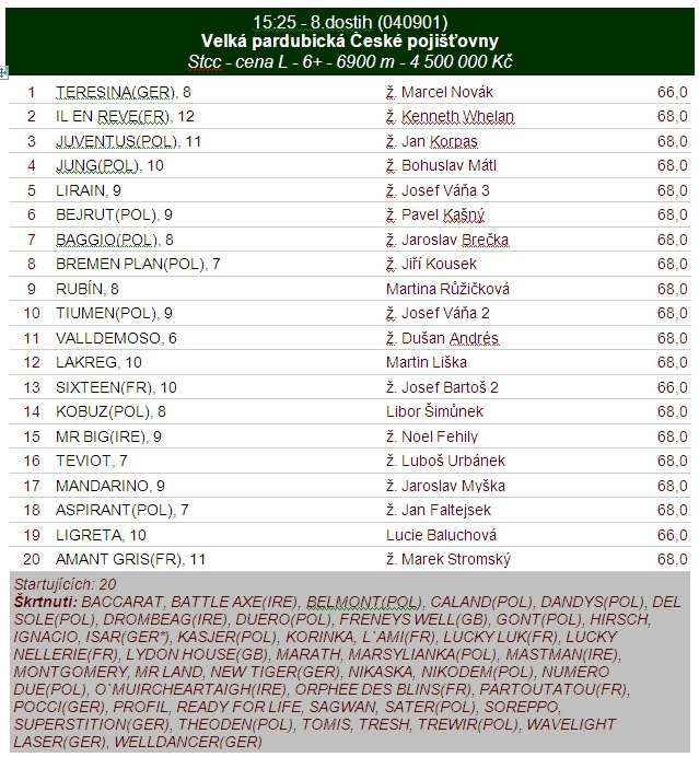 Vítězové jednotlivých dostihů v den Velké pardubické