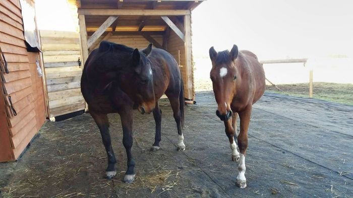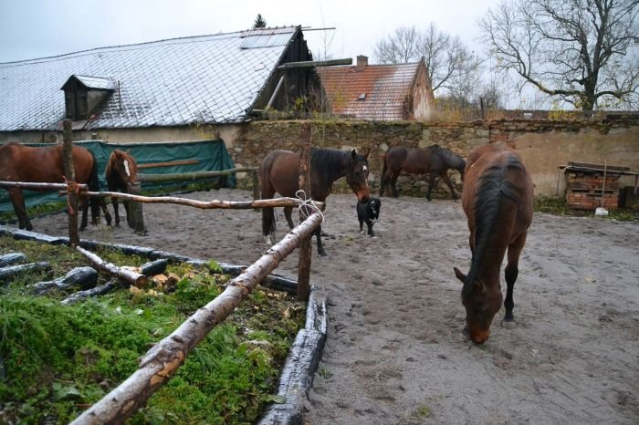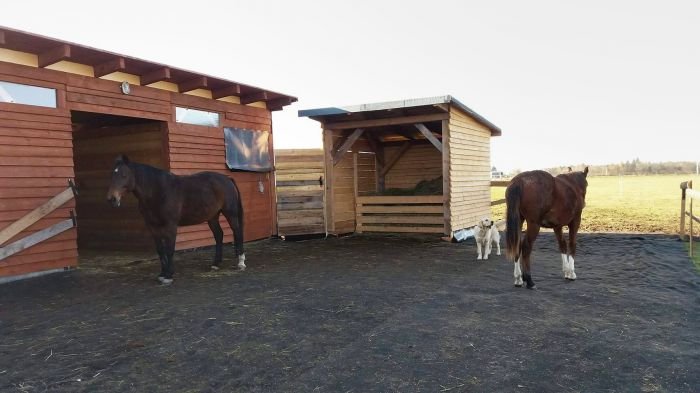 V současné době slouží toto zázemí 2 koníkům, kobylce českého teplokrevníka, které je 14 let, a jeden a půlletému valáškovi ČT, jejímu synovi. U koní se pohybuji už přes 18 let a kobylku mám od jejích osmi, ale teprve až v loňském roce se nám podařilo doma vytvořit dostatečné zázemí, abychom je mohli mít tzv. za domem a v podmínkách, které vyhovují jim i nám.