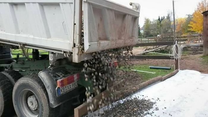 A na závěr obrazový tip z německého ustájení, kde v systému Paddock Paradise pořešili jednu část treku takto (příště se do této stáje podíváme podrobněji a zeptáme se, jak se jim trek z oblázků uklízí)…