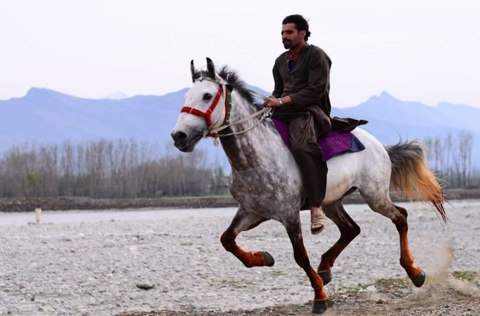 Koně mocných a dobře situovaných majitelů byli při významných událostech zdobeni i velmi složitými ornamenty. Na obrázku níže je například vyobrazen hennou barvený kůň nesoucí ženicha k domu nevěsty.
