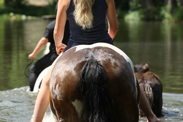 Platí rovněž – koním neomezujeme příjem vody ani po zátěži. Zapomeňte na stále ještě rozšířený mýtus, že po zátěži by kůň neměl pít, protože by mohl dostat koliku. Opak je pravdou! Napájet můžeme ihned po vykrokování, tedy asi dvacet minut po ukončení zátěže. Pouze koně, kteří neměli, z různých důvodů, přístup k vodě den či více, by se měli rozpít pozvolna. Nabídneme menší množství – ne ledové – vody a častěji.