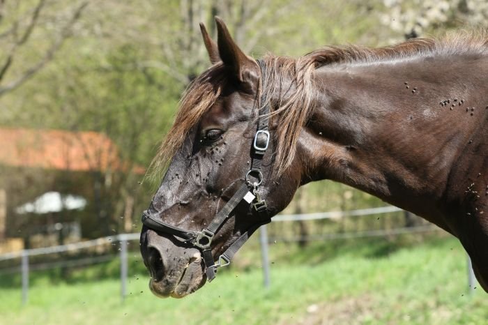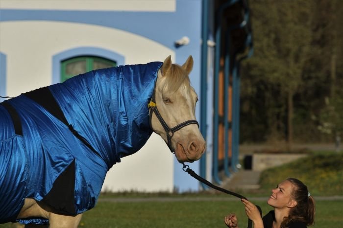 Deky a ochranné masky tedy skutečně nejsou alternativou stínu! Jejich funkce je jiná. Nejen, že chrání koně před obtížným hmyzem, ale brání i možnosti rozvoje zánětu kůže – fotodermatitidy, která se týká především koní s nepigmentovanou kůží (v ohrožení jsou i koně s velkými odznaky a strakoši) a souvisí jak s reakcí organismu na chemické látky obsažené v některých rostlinách (např. třezalka tečkovaná) a lécích, tak i kupříkladu funkčním poškozením jater.
