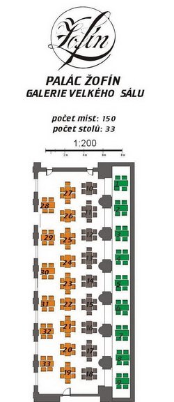 PLÁNEK SÁLU S VYZNAČENÝMI VOLNÝMI MÍSTY – ZDE