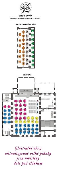 (uvedená čísla budou několikrát týdně aktualizována v závislosti na potvrzených objednávkách, plánky sálu s vyznačeným číslováním stolů v podrobném rozlišení najdete v níže označených přílohách)