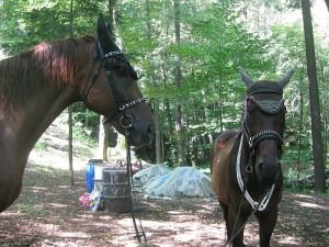 bubaciAsi poslední věc, na kterou je vhodné svého koně před vandrem připravit, jsou bubáci všeho druhu. Postavte si překážkovou dráhu obsahující překážky jako přecházení plachty, můstku, vlající fáborky (co když ve vesnici potkáte klasické červenobílé ohraničení výkopu?), křičící a běžící dětí, PET lahev vznášející se koni kolem hlavy (až vám kolegyně bude podávat vodu, neocitnete se jediným uskočením v příkopu na druhé straně cesty), bundu létající koni nad hlavou (až se budete oblékat/svlékat, nestane se vám, že byste napůl cesty v mikině chytali na běžícím koni otěže), barevný kýbl netradičního tvaru (napojit koně, když se bojí nádoby, co držíte v rukách, je fakt těžké). Obzvláštní pozornost věnujte dlouhé šustivé pláštěnce – na vandru jsem pončo naštěstí vytahovat nemusela, ale zážitek z dětství, kdy se řítím neovladatelně po louce, protože se můj kůň lekl pláštěnky šustící mu na zadku, nikdy nezapomenu. (A dodnes mě to štve – já na tu pláštněku byla taak hrdá, krásně mi přikryla nohy i sedlo a ten můj trotlík nebyl pytlikschopný se s ní vyrovnat! 🙂 Stejně tak je dobré koně připravit na deštníky, resp. slunečníky povlávající ve větru – pokud jedete na vandr v létě, věřte, že budou na každé hospodské zahrádce a byla by škoda neosvěžit se pivem jen proto, že se váš čtyřnohý partner odmítá k těm koňožroutům přiblížit. Pravda, je skupina koní, kteří jsou na bubáky nepřipravitelní (velmi často je poznáte podle rezavé barvy, ale mohou být maskováni i do barev jiných :-), ale přesto to stojí za pokus.