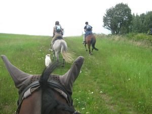 Co na sebe byla také otázka, kterou jsme před cestou opakovaně konzultovaly. Pohodlné rajtky byly jasné, ale co dál? Vzhledem k nemožnosti výměny propocených triček (na to, abyste ho propotili nemusí být ani vedro, na to stačí nějaký nečekaný artistický kousek vašeho koně) je rozumné využít vynálezu funkčního oblečení, díky kterému jste suší, i když jste mokří.:-) Zbytek je už na vašich preferencích, fleesové mikiny hřejí a poslouží i jako polštářek pod hlavu, ale profouknou. Když zmoknete, neochrání vás, ale zase rychle uschnou… V bundě, která nepromokne a neprofoukne (na polích a loukách občas dost fouká a na zpocené tělo to není to pravé ořechové) se zase upečete, jak vysvitne sluníčko. Jako šikovná kombinace se ukázalo moirové tričko, fleesová mikina, která se snadno sundá a zaváže kolem pasu, a vesta, která neprofoukne a nepromokne, ale ani nehřeje, takže není problém si ji vzít na sebe i když je horko, jste zpocení, ale na poli fouká. Mimochodem, vestu sice kolem pasu neuvážete, ale pokud ji necháte dole zapnutou a stáhnete si z ramen hořejšek, pak se chová stejně jako přivázaná a nijak nepřekáží.:-)
