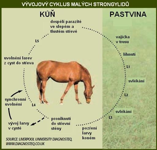 Zpracováno podle K. Briggs a spol.: Strongyles – the Worst of the Worms, The Horse 04/2004; K. Briggs a spol: Bots and Beyond: Little-Known Parasite Enemies, The Horse 05/2004.