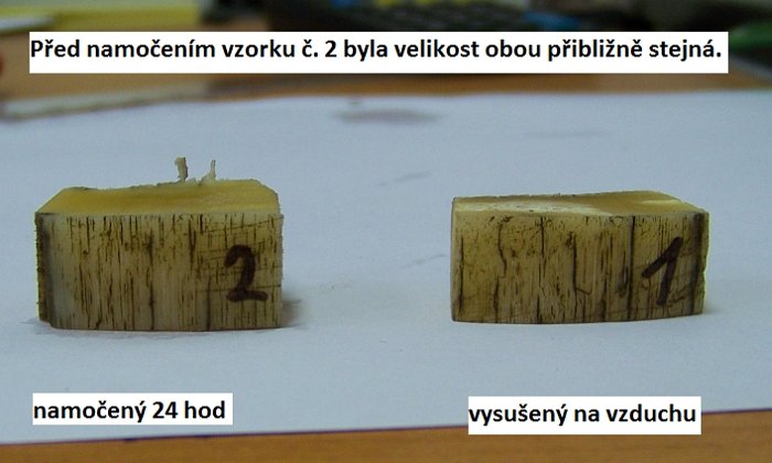 ke stlačení suchého vzorku byla zapotřebí síla 2 700 kg, ke stlačení namočeného vzorku byla zapotřebí síla 1 700 kg.