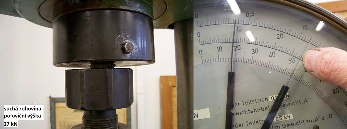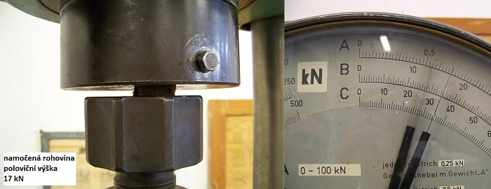 Ke stlačení suchého vzorku byla zapotřebí síla 8 200 kg, ke stlačení namočeného vzorku byla zapotřebí síla 5 400 kg.