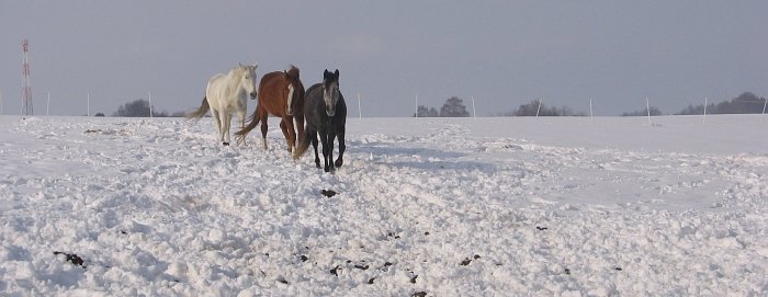 Složení mého koňského ministádečka je poměrně pestré: osmnáctiletý invalidní důchodce, sedmnáctiletá stále pracovně využívaná klisna a čtyřletá lipická puberťačka v procesu obsedání. Všichni tři po většinu svého života žili ve stájích s výběhy či pastvinami a trávili v nich velkou část času s dalšími koňmi různého věku i pohlaví. Nebyl jim nikdy cizí pobyt venku za rozličného počasí ani pobyt ve stájích. Protože oba starší koně mají zdravotní problémy, po celá léta jsem se upevňovala v názoru, že komerční ustájení, byť sebelepší z toho, co se v současné době standardně nabízí, není to pravé ořechové pro individuální péči o zdravotně „problémového" jedince. Bohužel se to ukázalo především během doby, kdy jsme byli ve stěhovacím procesu a ke koním jsem se dostala zhruba jednou měsíčně zaplatit nájem. Tato doba trvala něco přes půl roku a výsledkem byli – i přes standardní péči velmi slušné komerční stáje s pastvinami – dva koně v ne ideálním výživném stavu. Zanedlouho po přestěhování domů bylo možné si všimnout prvních změn k lepšímu; a mě nenapadá nic jiného, než toto povzdechnutí: Ne „přirozené" vypuštění na široširé pastviny do stáda, ale individuální přístup – byť na první pohled v méně přirozených podmínkách – dělá zázraky.