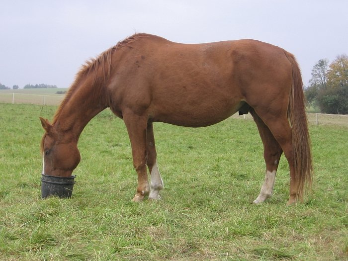 A ve výsledku méně bolavé klouby, stálejší střevní rovnováha a lepší imunita zcela jistě přiměly tělo koně po tolika letech „přibrat". Určitě k tomu přispěla i kvalitní tráva, která se nám urodila na nové pastvině, i když pastva valachovi nechyběla ani předtím. Uvidíme v zimě, když bude opět jen na seně…