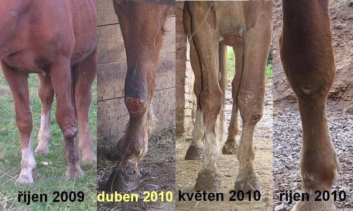 V půli října 2009 jsem domů přivezla poctivého hubeňoura, který – vedle četných sarkoidů po těle – měl na přední noze dokonale rozbujelý nádor; mokvající, páchnoucí, za teplého počasí hojně navštěvovaný mouchami. Již několik let jsme ho řešili tak, že přes zimu se „to" udržovalo v klidu a na jaře, když vyschlo bláto, jsme koně uspali a nádor vyřízli, aby zase přes léto mohl vybujet do původní velikosti. Tato procedura nás čekala i letos.