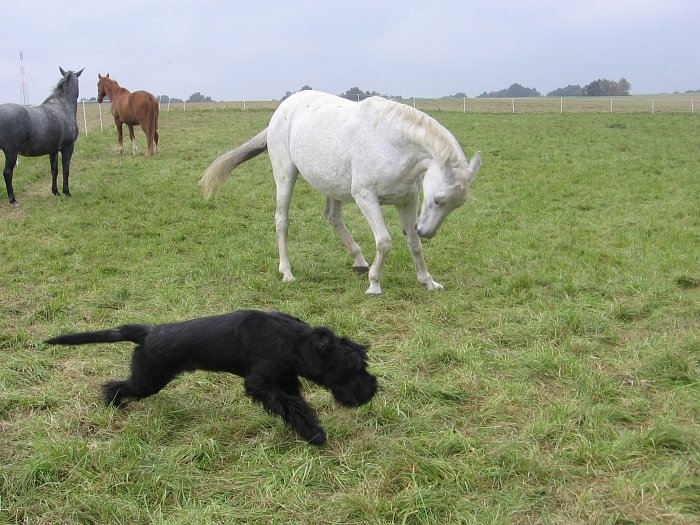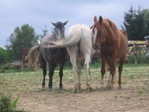 Psychické změny jsem pozorovala u svých koní už po pár měsících pobytu doma. Průhledná pravidla jejich vzájemných vztahů, dostatek prostoru i žrádla jistě udělaly své. Koně si vytvořili svoji stálou sociální skupinku. Podřízená a odstrkovaná šimla si začala lehce dovolovat na dominantního valacha. Lehce. Prostě se jím nenechala uzurpovat a občas dala najevo svoji nelibost. Dnes se spolu docela dobře kamarádí a ona mu občas vleze i do kýble s jádrem. Valach přestal nervózně hlídat své stádo kdykoli a kdekoli a psychicky se uvolnil. Mladá lipicánka, stojící v hierarchii mezi valachem a šimlou, se naučila jednat ve svůj prospěch, ale veskrze slušně. Samozřejmě výměny názorů mezi koňmi jsou časté, ale v naprosté většině případů se omezují na různé úšklebky, natočení zadku či náznaky kousnutí. Snahy o vyjasnění si hierarchie jsem si za ten rok nevšimla ani jednou; to vše byly skutečně pouze různě výrazné, ale jen vteřinové diskuse, téměř vždy se týkaly krmení jádrem či pamlsku.