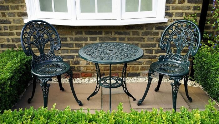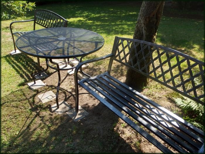 Kovové lavičky a stolek by měly být bezúdržbové, pokud nesáhnete po nejlevnějších výrobcích, které mohou reznout ve spojích – pozor na to!