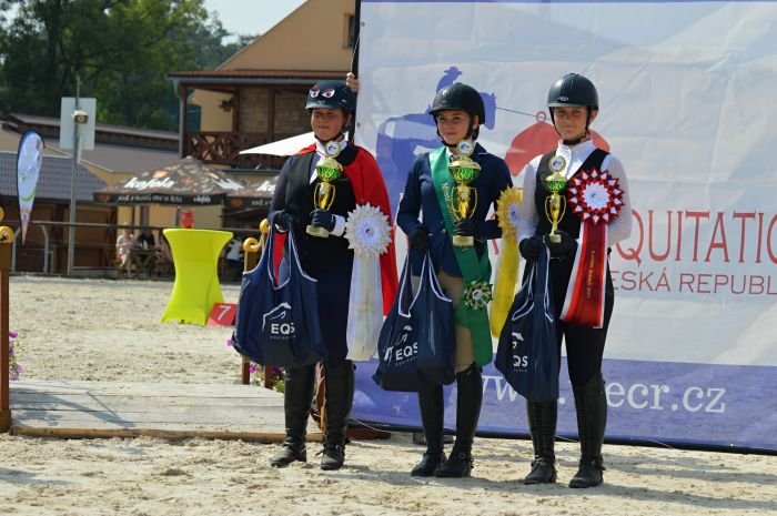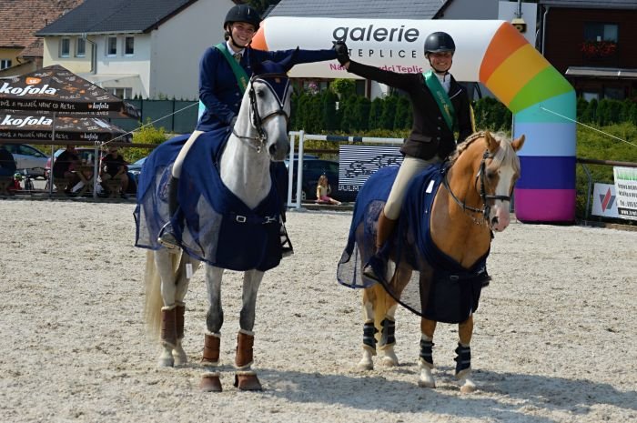 Výsledky v seniorské třídě myslím odpovídají aktuálním výkonům jezdeckých dvojic. Šárka Kopecká s Terkou Slabou jsou výsledkově o parník vpředu a my ostatní bojujeme o třetí pozici na bedně. 🙂 Z juniorské kategorie vypadla Jindřiška Kučerová, která celkem 3x dosáhla na titul mistryně v této kategorii. Letos již přestoupila do seniorské kategorie. Na její pozici favoritky se dostala Týnka Maternová na zkušeném GinTonicovi a ta svou pozici potvrdila a zaslouženě vyhrála juniorskou kategorii. V dětské kategorii mě překvapilo, kolik dětí zabojovalo o mistrovský titul, byly tam známější i zcela nové tváře a to je super.