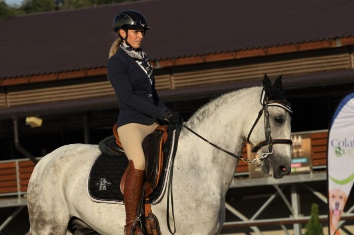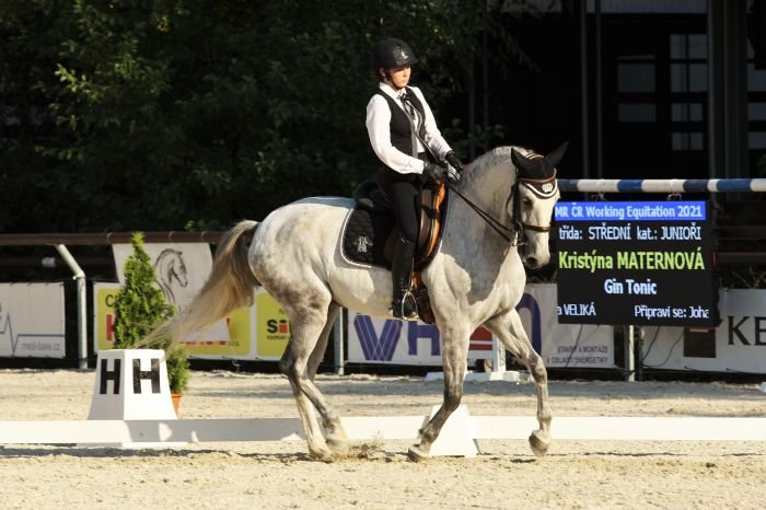 Ano, s GinTonicem jsem se zúčastnila v juniorské kategorii a Šárka Kopecká v kategorii seniorské, kde skončila na úžasném druhém místě. Šárinka je majitelka GinTonica, také má workingová trenérka, ale především velmi blízká přítelkyně. Bez ní bych nic takového nemohla zažívat. Nesmírně si vážím všeho, co pro mě dělá, protože někdo takový, jako je právě ona, se velmi těžko hledá. I celá její rodina mi je velkou oporou. Je to taková moje druhá rodinka 🙂 GinTonic je lusitánský valach, kterého mám tu čest sedlat již pátým rokem. Velice jsme si spolu sedli a snažíme posouvat dál. Je to miláček, má obrovské závodní srdce, je ochotný, všestranný a snaživý. Každý si ho zamiluje! Umí však vymýšlet spoustu kašpařin, jako například ožírání překážek, jejich bourání, motání si nožiček a občas se dokáže i roztomile vztekat.