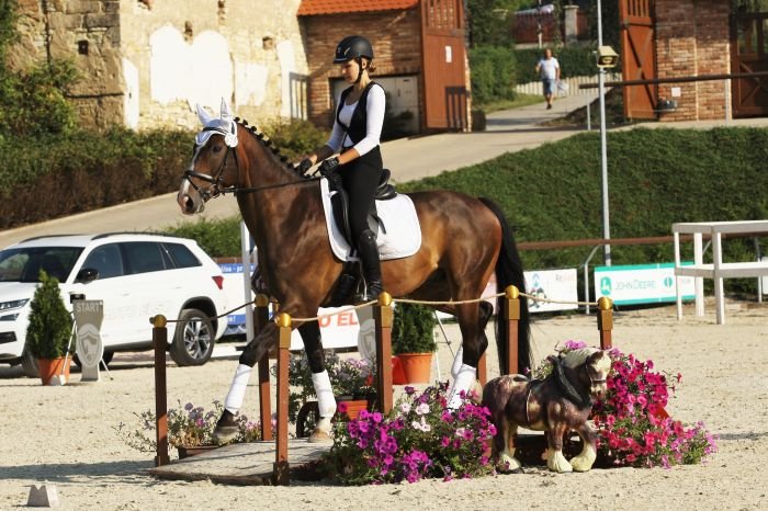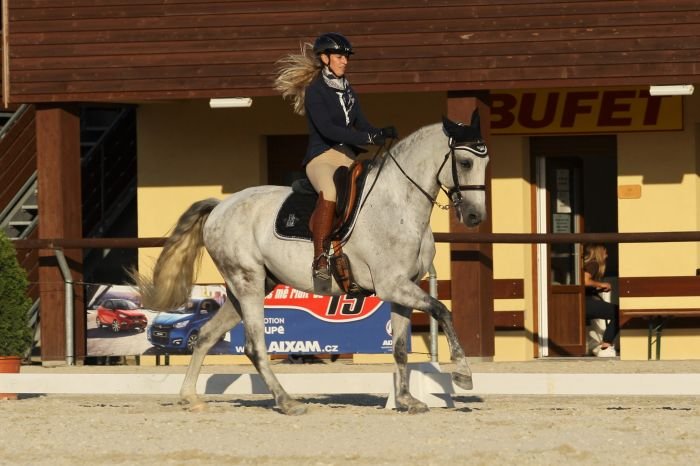 Hahaha 🙂 Tak drezurní test byla velká neznámá. I když jsem spoluorganizátorka MČR, celou dobu jsem si myslela, že se na mistrovství jede úplně jiná úloha než ta, která byla vypsána. Když jsem si brala od Týnky GinTonica a chtěla jít opracovat před drezurou, říkám jí: „Ty jo snad nezabloudím, jsem tu úlohu jela naposledy v Polsku.“ No a Týnka na to: „Tuhle úlohu jsi ale v Polsku nejela, jede se P1!“