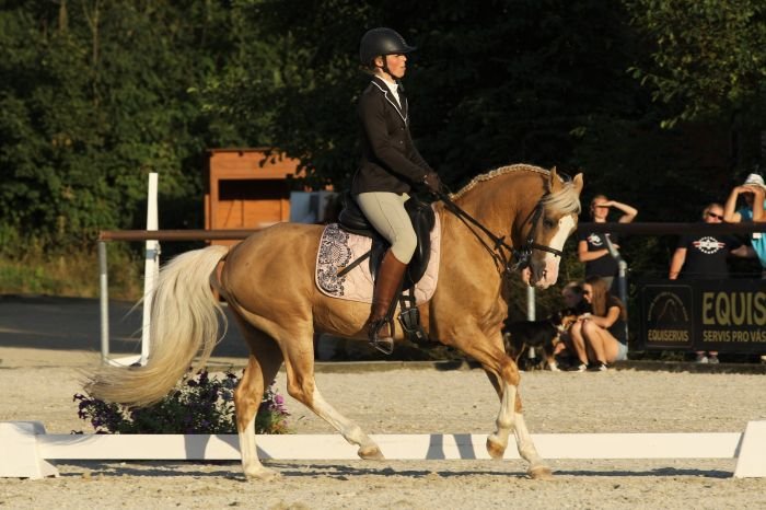 Takže nastala panika a já poslala zatím Týnku krokovat a úlohu si kreslila na papír. V kolbišti jsem se pekelně soustředila na to, co jedu. Dopadlo to bezvadně, nezabloudila jsem a hlavně mě nevycinkali hned po pozdravu! 🙂 Takže jsem byla nesmírně vděčná Týnce, že čte propozice lépe než organizátor, který je tvoří! 🙂 Celkově druhé místo z drezury byl tedy pro mne zázrak. 🙂 Potěšila mne i slova ostatních jezdců, že jde na nás vidět veliký progres, což mi dává sílu bojovat a učit se dál.