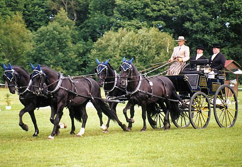Jiří Škodný se čtyřspřežím slatiňanských starokladrubských vraníků.