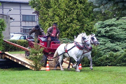 Víkend formanských jízda zahájil hustým deštěm, v němž se nejen blbě fotí, ale i o chlup hůře jezdí. Zahajovací vozatajská soutěž "na rozehřátí" tedy připravila divákům i adrenainové chvilky v podobě jízdy smykem. Efektně ji využil především vítězný pan Vlašic :o)
