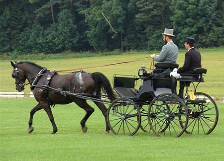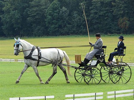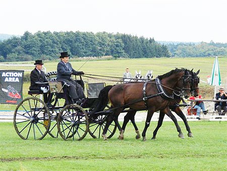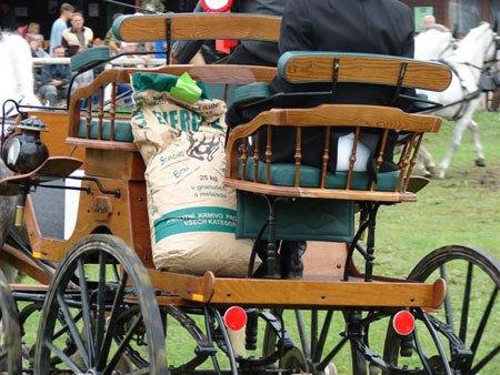 Drezurní zkouška probíhala jako vždy na fotbalovém hřišti, avšak deštivé počasí předešlých dnů udělalo s jinak bezvadným povrchem své. V horní části drez. obdelníku se bořili koně a zařezávala se kola parádních kočárů. Podmínky však měli všichni vozatajové stejné.