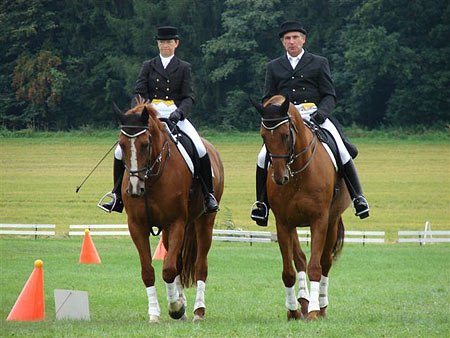 Středočeské Bratronice jsou sídlem vítězného Jaroslava Kohouta ze soutěže párů. Jeho vítězných 16,97 tr.b. na parkuru hovoří o obtížnosti zcela jasně. Zapřahal Genifera a Lafrana. Druhé místo z rukou nepustil ing. Ladislav Vyrtych z Března – Rudolfo Fála I, Alabanza-45. Lipicánky Marushka a Ravena, vedené Tomášem Jelínkem, nebyly při překážkové jízdě nijak zvlášť vnímavé (32,3 tr.b.), přesto jim neuniklo třetí místo.