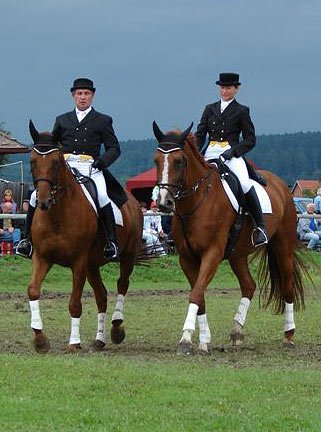 Nedělní program zpestřily v přestávkách mezi parkury ukázky výcviku dětí na poníkovi, jízda v dámském sedle Heleny Vrbické a nádherné drezurní PAS-DE-DEUX v podání Jaroslavy Haškovcové a Jana Bubna.