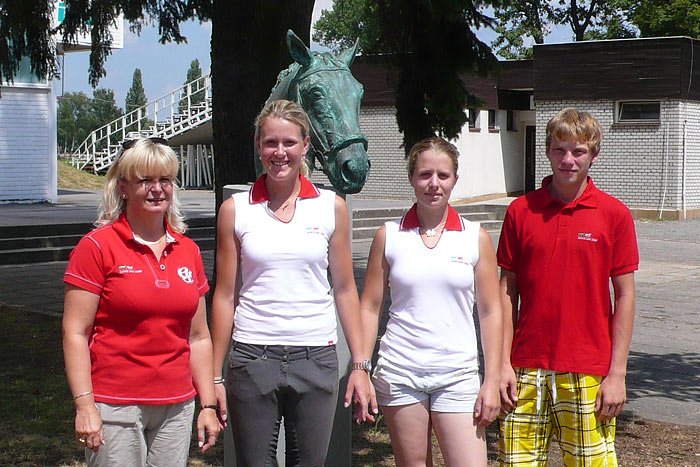 Tři mladí čeští reprezentanti absolvovali drezurní trénink na pískovém kolbišti pod vedením Daniely Diringerové a Františka Slavíka. „Koně se už jen kondičně udržují, aby se před šampionátem ještě na poslední chvíli nezranili. Někteří z nich ještě půjdou parkur, ale kros už ne," uvedla Daniela Diringerová. „Účelem dnešního pardubického tréninku bylo obhlédnout si drezurní obdelník a projít si krosovou trať. Ovšem bez koní," dodala.