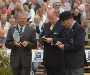← Peter Holler (vlevo) je členem sboru rozhodčích na Bundesšampionátu, což je nejvyšší soutěž, pořádaná pro mladé koně.