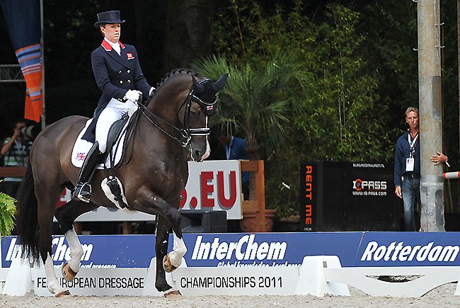 Charlotte a Valegro v roce 2011. Všimněte si Carla vpravo, jak se drží sloupu veřejného osvětlení u vchodu do obdélníku a je jako v transu. Na konci úlohy si otíral oči…