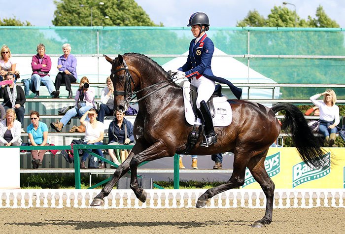 Asi bych to musel vidět. V Anglii nemáme koně s tak expresivními chody a netrénujeme je na to. Na soutěže mladých koní neklademe takový důraz. Jsou to jen příjemné soutěže, kam můžete vzít mladé koně se trochu okoukat. A k tomu je využíváme. Charlotte jednou navrhla, že bychom mohli vyrazit na mistrovství světa mladých koní, ale já jí řekl, že ne, na to se nesoustředíme. Musíte přemýšlet o tom, co z těch koní vytváříte. A já nechci, aby ve čtyřech, pěti nebo šesti letech chodili takto.