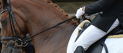 Obrázek vpravo: Prohlubně a vrásky na krku před kohoutkem – kůň nepracuje úplně správně přes horní linii.