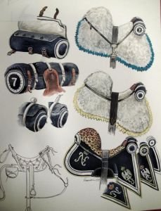 K sedlání patřila červená čabraka se žlutým okrajem, stejnobarevné přikrývky holstrů, označené korunovaným N, a rovněž červený vak za sedlem, se žlutými lemy. Je zajímavé, že Tataři používali různé varianty sedlání: kromě čabrak uherského stylu zdobených stejně jako u švališerů používali Tataři sedlové přikrývky na polský či pruský způsob (viz ilustrace).