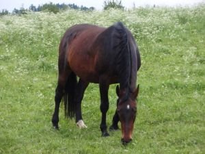 V té době jsme měli koně v pastevním režimu pouze přes sezónu a každý podzim jsme je převáděli do 12 km vzdáleného zimoviště. Tam byli přes den za jakéhokoliv počasí v menším výběhu a přes noc v boxech. Začátek zimy dal Mušce přes dostatek krmení docela zabrat, zhubla v zádech, vypadala jako žebřiňák, přitom břicho jí rostlo. Sena měla víc než sežrala, přes den i senáž, k tomu ráno mačkaný oves, večer sladový květ, otruby, lněné semínko.. Snažili jsme se dát ji co nejdříve dohromady a už brzy po Novém roce se začala vzpamatovávat. Než přišlo jaro, byla zase pěkná. Porod v dubnu zvládla na jedničku, narodil se jí krásný hřebeček a v květnu šli zase všichni koně zpátky na pastviny. Od té doby dala Muška ještě dvě hříbata, je zdravá jako řípa, neměla jediný zdravotní problém. Letos oslavila 21 let a kromě stařeckých potíží s klouby (naštěstí ale nijak závažných) je naprosto zdravá.