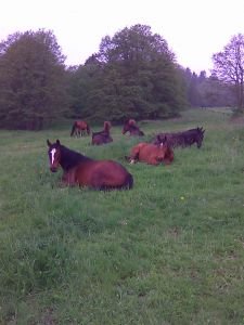 Od jara 2008 máme koně venku i přes zimu (a litujeme, že jsme se neodhodlali dřív). Žádný z našich koní s tím neměl ani nejmenší problém. Přes sezonu se pasou na ploše cca 19 hektarů, kterou máme rozdělenou na 4 pastviny, přes zimu jsou v jedné ohradě, kde je přístřešek, a k dispozici mají balíky senáže. Celoročně mají pochopitelně přístup k solnému lizu, bílému i minerálnímu, jsou pravidelně očkovaní, odčervovaní, korektury děláme po 7-8 týdnech.